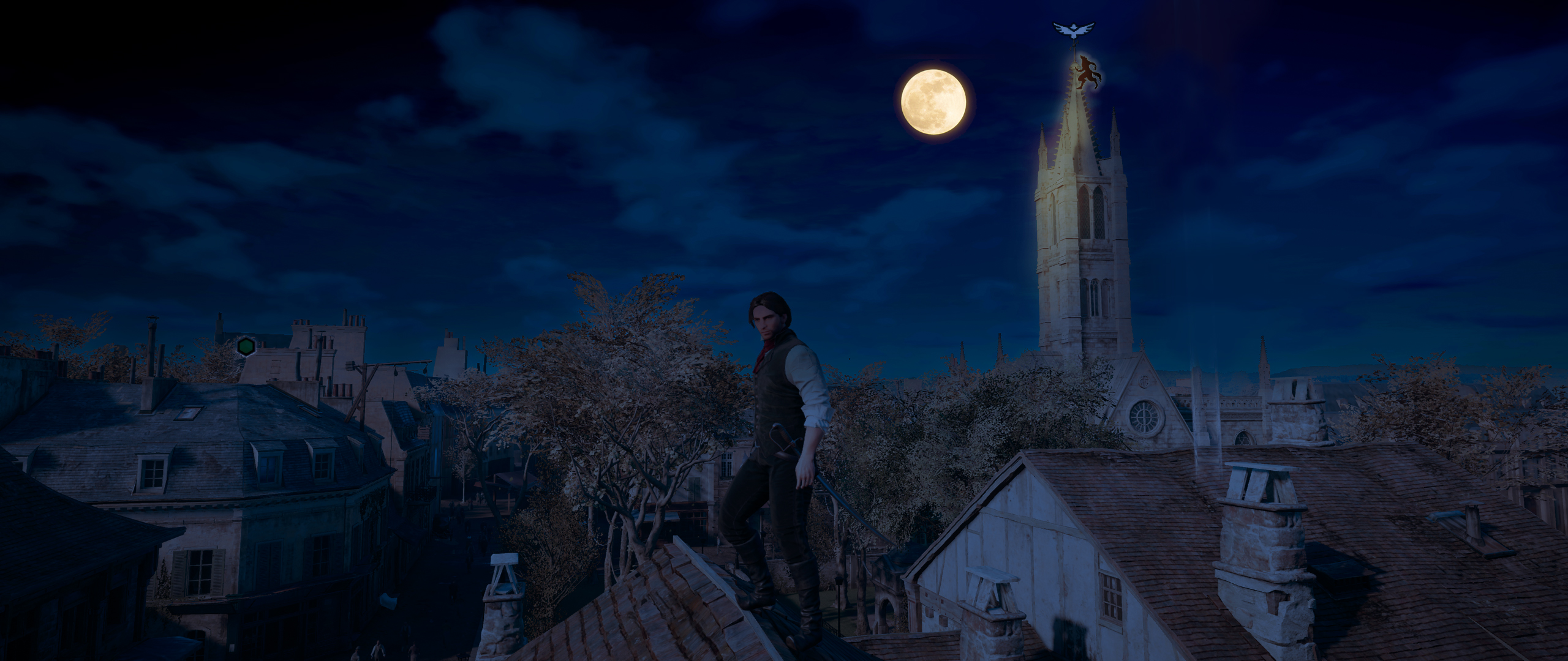 - 플레이어는 탐정이며 실종된 여자를 찾고 있습니다. 그 때 늑대인간의 하울링 소리를 듣고 탐정의 직감에 따라 늑대인간의 흔적을 따라가며 실종된 여자의 흔적과 늑대인간에 의해 부숴진 현장&죽은 사람들을 같이 발견합니다. 벽과 지붕의 발톱 자국을 따라 지붕으로 올라간 플레이어는 건너편 지붕에 늑대인간에 의해 살해된 실종된 여자의 시체를 발견하고 저 멀리 시계탑에 매달린 늑대인간과 보름달을 바라봅니다.